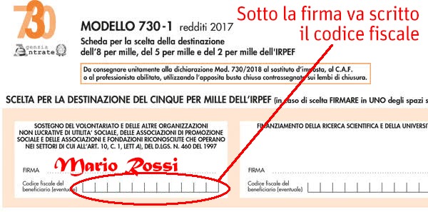 - Cerca nel modulo Modello Unico, 730, CUD lo spazio: “Scelta per la destinazione del 5×1000”